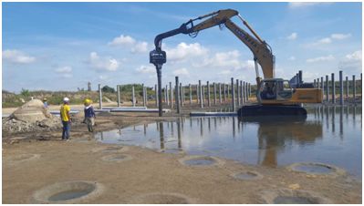 中廣核海南文昌立洋漁光互補項目于2018年5月15日中標,18日正式進場,目標并網(wǎng)時間為6月30日。該項目占地面積415畝,全部由單個面積4-10畝不等的魚塘組成,給項目設(shè)計、材料倒運、現(xiàn)場施工帶來極大困難。而短短40余天施工周期內(nèi),臺風(fēng)登陸、外送線路塔基征地受阻等諸多意外因素,給原本緊張的項目工期又增加了多重壓力。